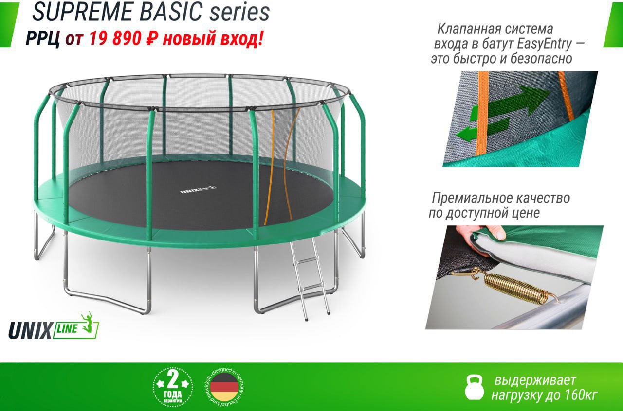 С 19 мая - снижение цен на новую серию батутов BASIC в популярной линейке SUPREME!
