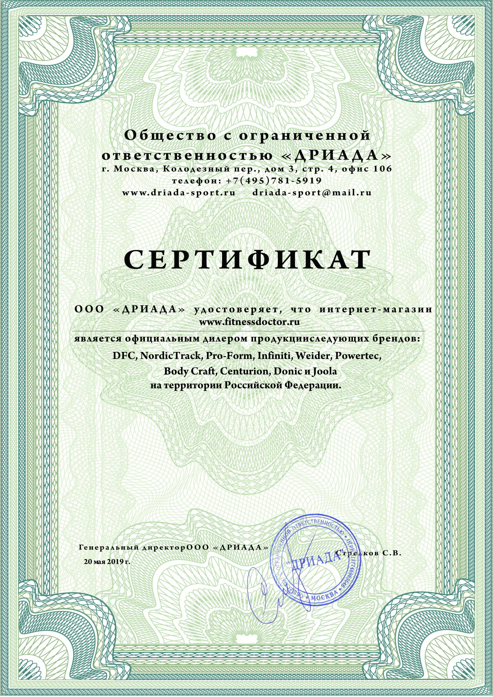 Лицензии и сертификаты на товар. Наша компания - официальный дилер бренда.